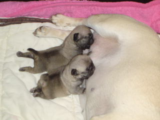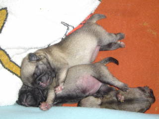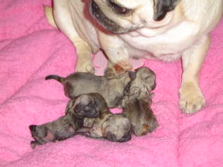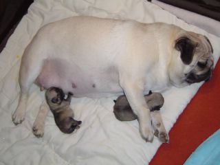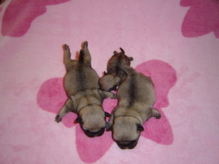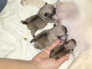 Aranka of Pugsparadise Ichi-Ban, Ariëlla of Pugsparadise Ichi-Ban, Adaria of Pugsparadise Ichi-Ban