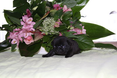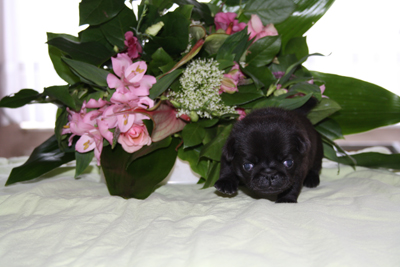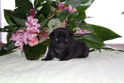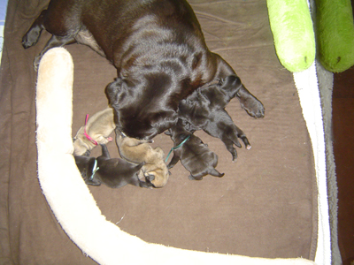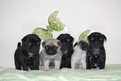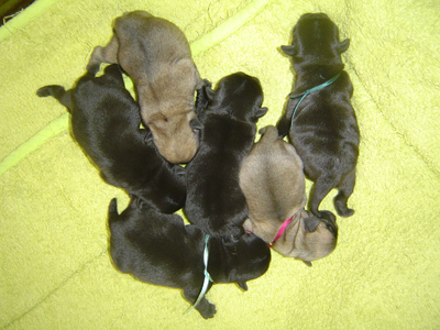 (3 zwarte reuen, 1 zwart teefje en 2 beige teefjes)